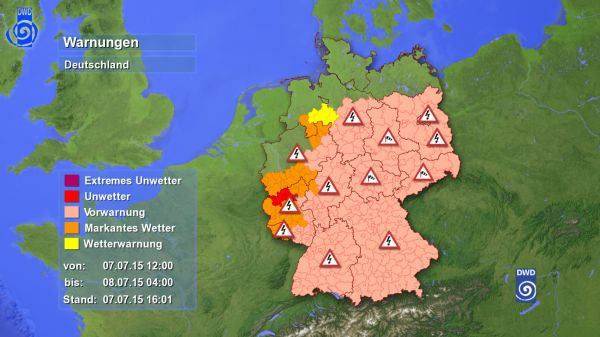 Für einem Großteil von Deutschland gilt aktuell die Vorwarnstufe des Deutschen Wetterdienstes. Es besteht die Gefahr aufkommender, regional schwerer Gewitter mit starkem und ergiebigem Regen, einzelnen Sturmböen und großem Hagel! Die Warnung gilt aktuell von 17 Uhr heute Mittag bis in die kommende Nacht um 4 Uhr!
