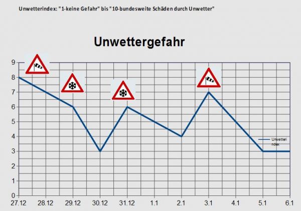 Die kommende Woche steht ganz im Zeichen des Winters, der sich zumindest vorübergehend bei uns einnisten kann. Nach einem zum Teil stürmischem und nasskalten Wochenende sorgen immer wieder Schnee- oder Schneeregenfälle für vielerorts glatte Straßen, dabei sind vor allem die südlichen und südöstlichen Landesteile und hierbei das Alpenvorland betroffen, denn hier kann es auch langanhaltend schneien. In den anderen Regionen ist während des Wochenverlaufs auch mit oft ruhigem, trockenen und teils freundlichem Winterwetter zu rechnen. Zum Ende der Vorhersagewoche zeigen die Computermodelle jedoch wieder ein herannahenden Sturmtief mit teils nasskaltem Wetter und Schnee-, Schneeregen oder Regen und damit verbundener Glättegefahr.