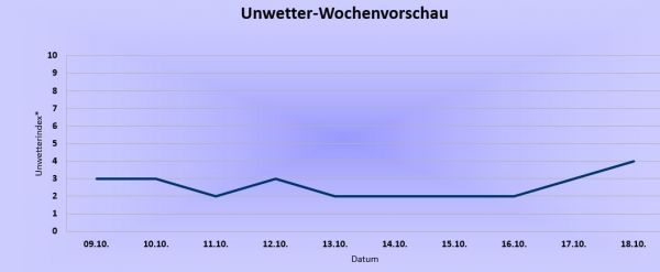 In der laufenden Wetterwoche bleibt die Unwettergefahr durchweg gering und nur vorübergehend mäßig. In der ersten Wochenhälfte ist es dazu mit Ausnahme des Südens noch verbreitet wechselhaft und immer wieder nass. Etwa ab Donnerstag setzt sich voraussichtlich im gesamten Land stabiles Hochdruckwetter mit viel Sonnenschein, milderen Temperaturen und trockenem Wetter durch.