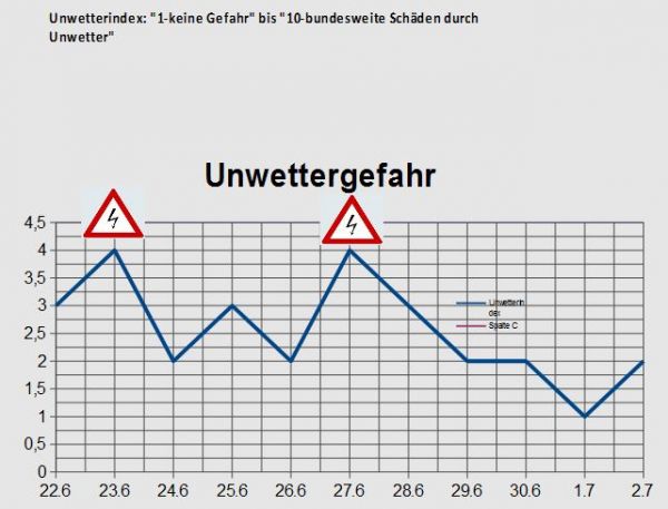 mäßiges Gewitterrisiko zum Wochenstart- und -ende