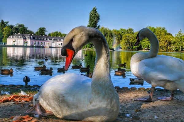 Schwäne im Schatten vor Schloss Benrath in Düsseldorf - Bild: Achim Otto