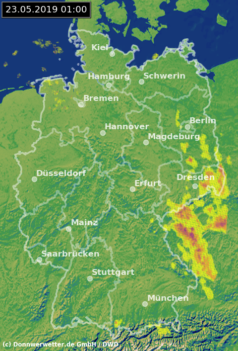 Radarbild von Donnerstag, 23.05.2019 um 01.00 Uhr