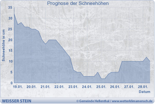 In den deutschen Mittelgebirgen gestaltet sich die Schneesituation aktuell noch ein wenig anders: Am donnerwetter.de-Wetterpark am Weißer Stein (Eifel) liegt die Schneehöhe aktuell z. B. noch bei stattlichen 39 cm. Doch hier wie in vielen anderen Höhenlagen auch ist mit der Milderung im Wochenverlauf mit Tauwetter zu rechnen (s. Grafik).