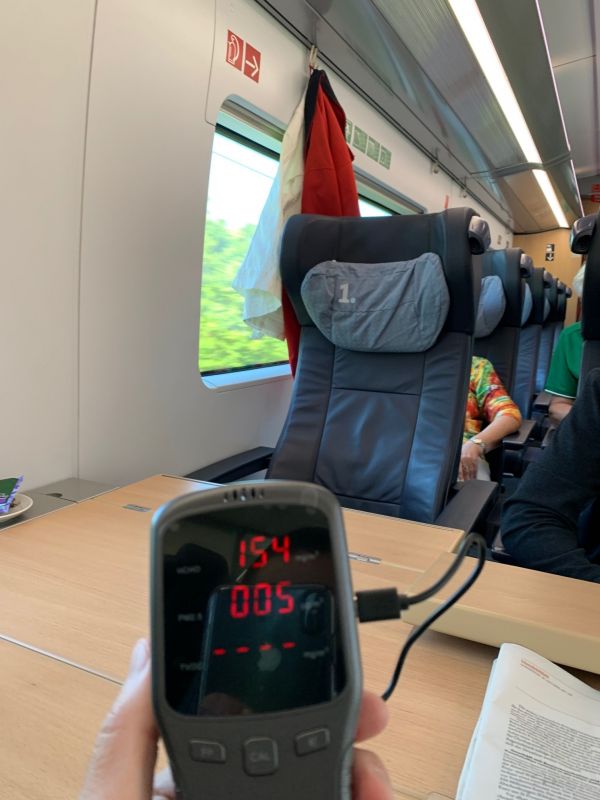 Wir haben den Selbstversuch gewagt und mit einem CO2-Messgerät mehrere Messungen in einem ICE-Waggon durchgeführt. Das Ergebnis: Bei einem Höchstwert von 700 ppm herrschte in unserem Testwagon ein guter Luftwechsel und beim ordnungsgemäßen Tragen eines Mund-Nasen-Schutzes kein erhöhtes Ansteckungsrisiko.