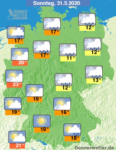 Der Pfingstsonntag bringt aus aktueller Sicht dann insgesamt deutlich wechselhaftes Wetter mit sich. Im Norden und Osten dominiert am letzten Tag des Monats eine meist geschlossene Wolkendecke und immer wieder fällt Regen, die Tageshöchsttemperaturen sind mit 11 bis 17 Grad zudem um einiges niedriger als in den letzten Tagen. Im Süden und Westen ist der Himmel dagegen teils heiter, teils wechselnd bewölkt und es bleibt überwiegend trocken. Mit 16 bis 23 Grad entlang des Rheins ist es hier teils deutlich milder.