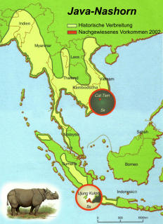 Waren bis zu 1.600 Kilogramm schweren Java-Nashörner früher in Südostasien weit verbreitet, so leben heute nur noch etwa 60 Tiere im Ujung Kulon Nationalpark an der Westspitze Javas und im Cat Tien Nationalpark im Süden Vietnams. Damit gehört das Java-Nashorn, das im Gegensatz zu seinen afrikanischen Vettern nur ein Horn trägt, zu den seltensten Großsäugern der Welt. Die größte Gefahr für das Nashron war und ist jedoch die Wilderei. Sein Horn wird in der asiatischen Medizin als kostbares Heilmittel gegen Fieber, Epilepsie oder Malaria hoch geschätzt und bringt Wilderern hohe Gewinne ein. Nur sehr selten bekommen Menschen die scheuen Tiere zu sehen. Das Foto in einer Fotofalle entstanden.