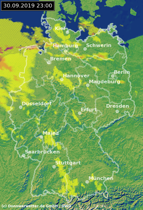 Radarbild von Montag, 30.09.2019 um 23.00 Uhr