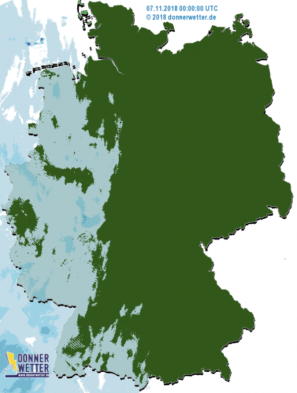 Am Sonntag regnet es gebietsweise. Die Mengen liegen dabei zwischen 1 und 10 Liter pro Quadratmeter. Trocken bleibt es vermutlich nur im südlichen und östlichen Bayern.