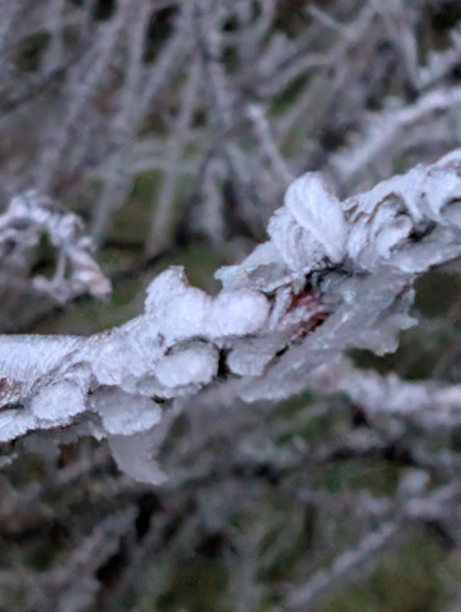 Raureif entsteht hingegen überwiegend bei ruhigem Wetter und Temperaturen meist unter -5 Grad, häufig auch deutlich darunter. Dabei lagert sich Wasserdampf direkt aus der Luft an kalten Oberflächen ab (Sublimation). Das Ergebnis sind feine, feder- oder nadelförmige Eisstrukturen, die gleichmäßig in alle Richtungen wachsen.