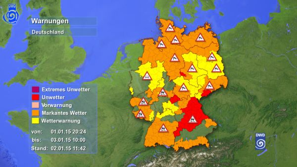 Mehr Informationen finden Sie im Deutschlandwetter. Hier ist die aktuelle Warnlage im Überblick: