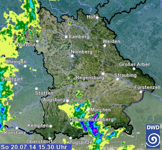 Zum aktuellen Radarbild von Bayern hier klicken.
