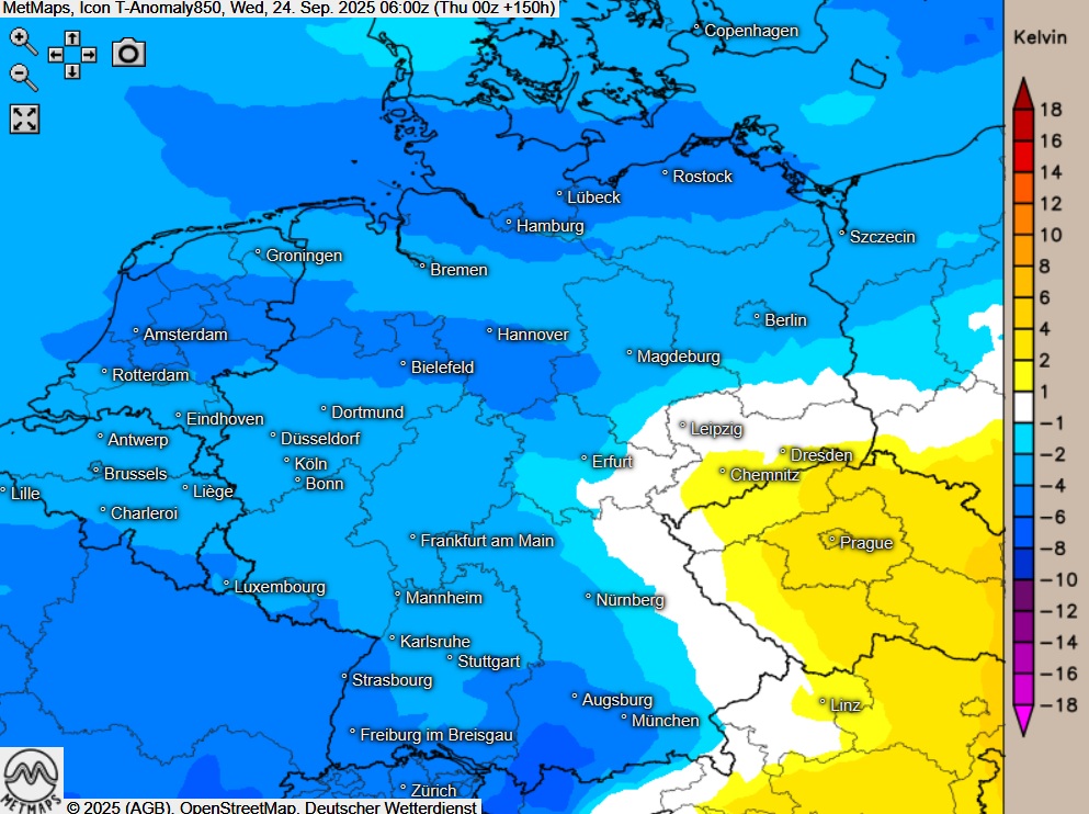 Der Grund für diesen extremen Umschwung liegt im Wechsel der Luftmassen. Bis Samstag strömt noch subtropische Warmluft nach Deutschland und sorgt in Kombination mit viel Sonne für spätsommerliches Wetter. Danach geraten wir jedoch auf die kalte Seite eines Tiefdruckgebiets über Mitteleuropa, das zunehmend kühlere Luft heranführt.