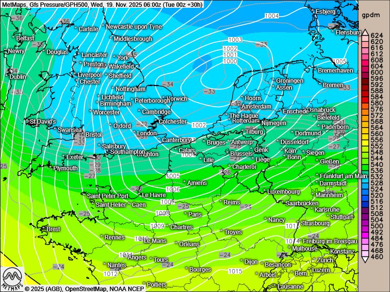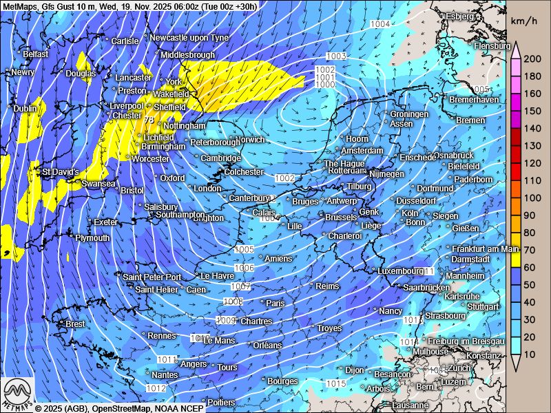 Das kleine Tief „Talat“ läutet die erste winterliche Bewährungsprobe für Europa ein: Es wird am Mittwoch zunächst England mit feucht-polaren Luftmassen und Sturmböen fluten. Ab 150 bis 200m Höhe fällt auf der Insel durchweg Schnee, heftige Verkehrsprobleme sind zur Wochenmitte hier also schon vorprogrammiert.