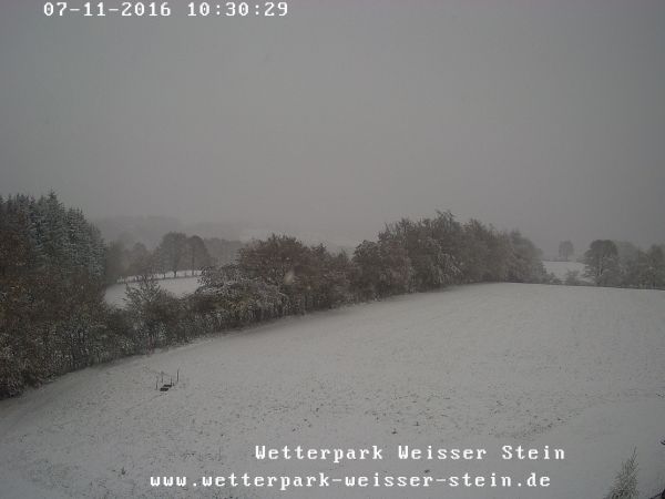 Zu einer immerhin 6 cm dicken Schneedecke haben es die ersten weißen Flocken in den letzten Stunden am donnerwetter.de-Wetterpark in der Eifel gebracht.