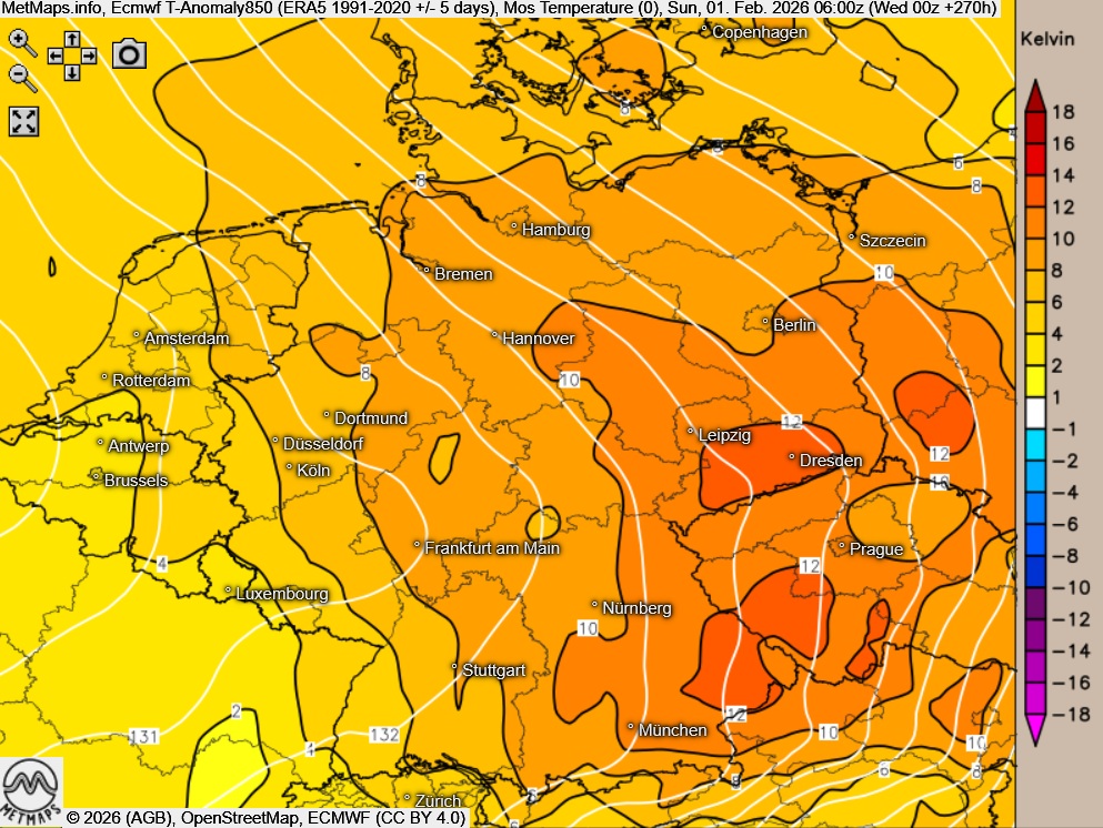 Temperaturanomalie ECMWF für den 01.02.