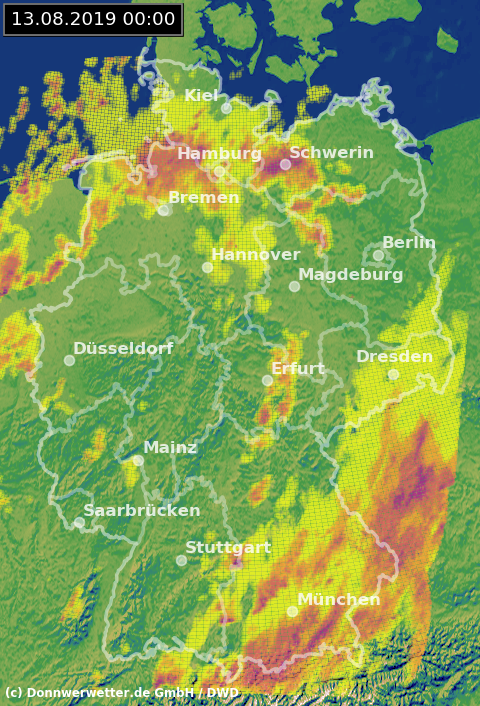Radarbild von Dienstag, 13.08.2019 um 00.00 Uhr