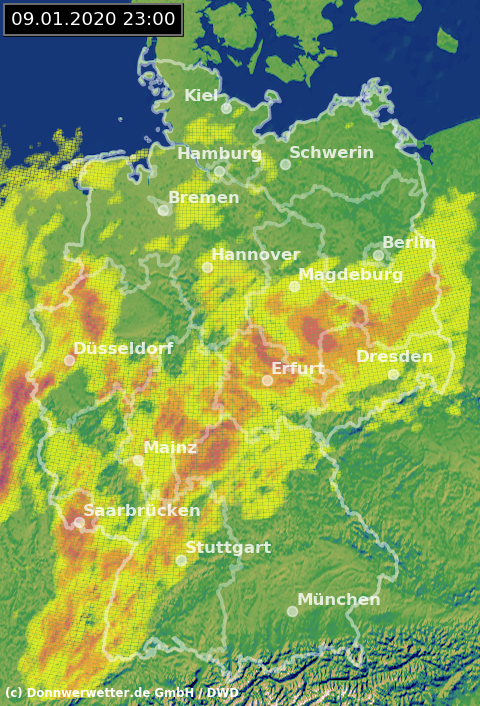 Radarbild von Donnerstag, 10.01.2020 um 23.00 Uhr