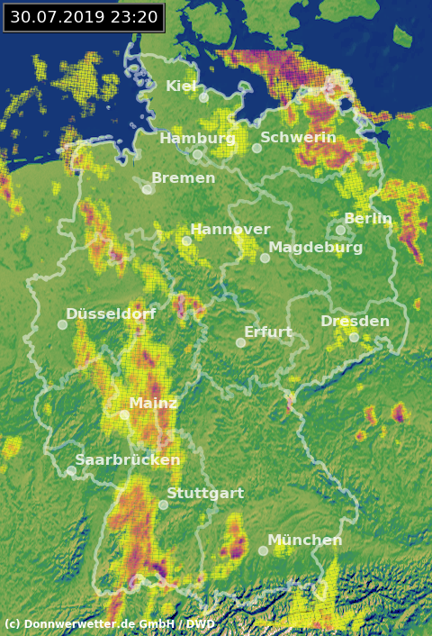 Radarbild von Dienstag, 31.07.2019 um 23.20 Uhr
