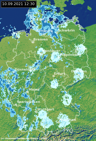 Mit den Gewittern sind auch Starkniederschläge möglich, lokal können binnen weniger Minuten dann auch mal 20 bis 30 l/m² zusammenkommen.