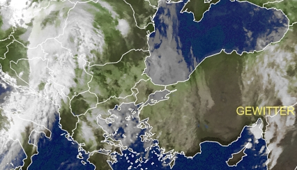 Gewitter sind über der Türkei und Syrien zu sehen. Luftangriffe werden aber kaum behindert, da es nur einzelne Gewitterzellen sind und diese umflogen werden.