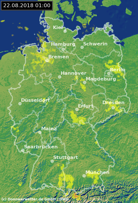 Radarbild von Mittwoch, 22.08.2018 um 01.00 Uhr