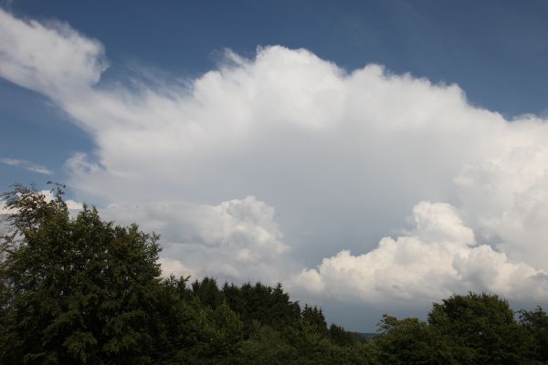 An vielen Stellen in Deutschland türmen sich Gewitterwolken auf. Das Photo zeigt die Situation im Westen Deutschlands mit einer voll entwickelten Gewitterwolke.