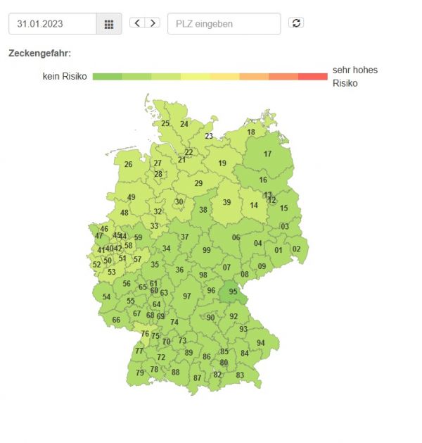 Wie hoch das Zeckenrisiko in Ihrer Region ist, erfahren Sie über unsere Zeckenkarte!