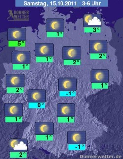 Aber der klare Himmel sorgt auch dafür, dass es sich nachts stark abkühlt. Teilweise können die Lufttemperaturen auch unter der Gefrierpunkt sinken. Die Bodenoberfläche kann sogar noch stärker abkühlen, so dass sogar trotz leichter Plus-Grade der Lufttemperaturen wieder Bodenfrost geben kann!