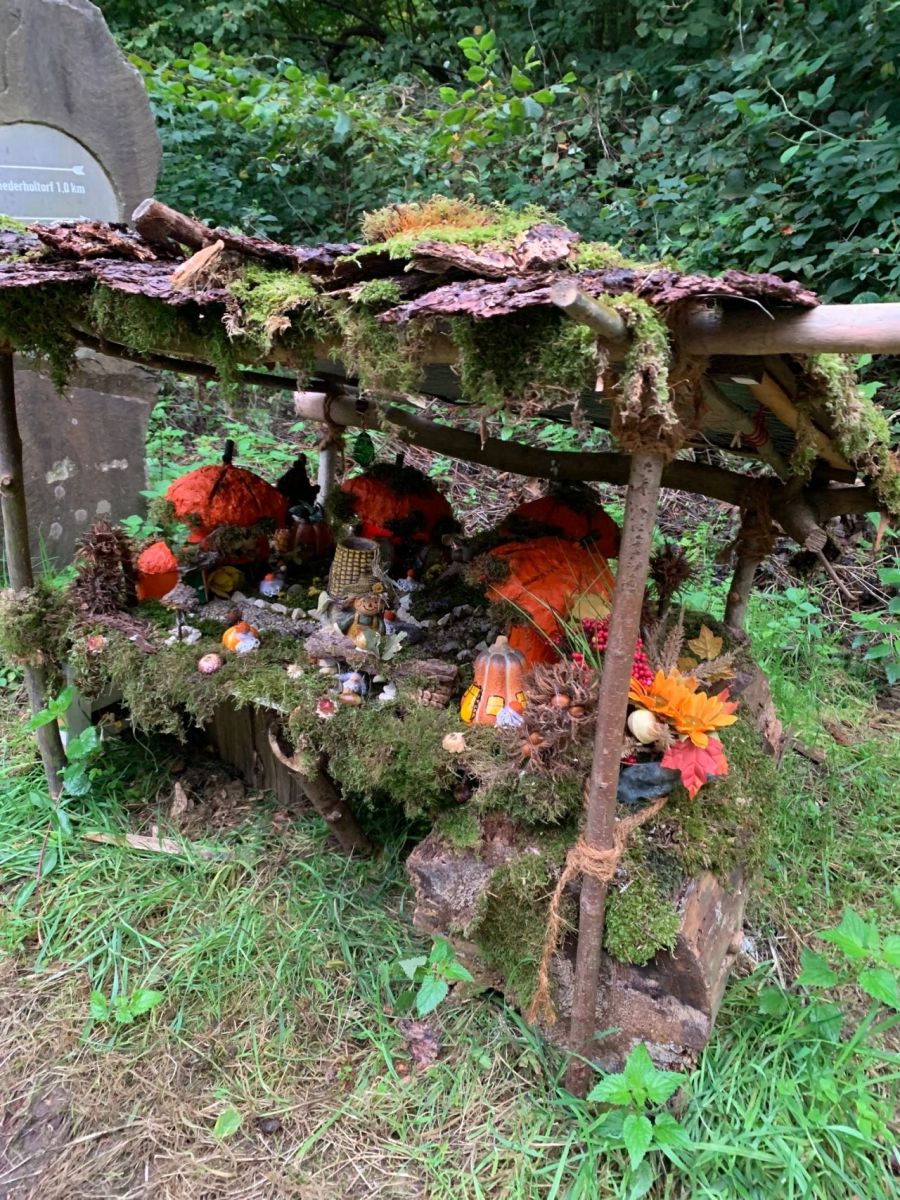 Wo man sonst nach dem Wochenende allenfalls auf alte Autoreifen und wild entsorgten Müll trifft, hat uns der Wald bei unserer morgendlichen Runde heute mal mit einer positiven "Hinterlassenschaft" überrascht – ein echtes Herbstkunstwerk und das pünktlich zum astronomischen Herbstanfang!