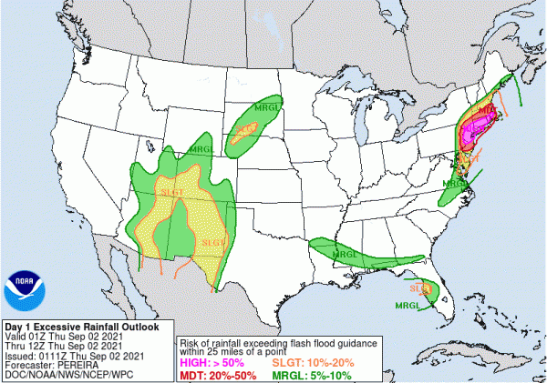 Vor allem für den Süden New Yorks und den Süden Neuenglands besteht auch weiterhin ein erhöhtes Überflutungsrisiko, wie auch aktuelle Karten der US-amerikanischen Wetterbehörde NOAA zeigen.