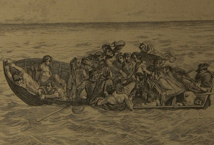 Während ein schwerer Hurrikane, mit zahllosen Todesopfern, über die Philippinen gezogen ist, der Name des Sturms lautete 'Haiyan', droht auch im Mittelmeerraum schwerer Sturm. Im Seegebiet zwischen Italien und Nordafrika werden hohe Wellen und orkanartige Böen bis Mitte nächster Woche erwartet. Hoffentlich gibt es keine Todesopfer durch Flüchtlingsüberfahrten. Ein Stich aus der Donnerwetter.de-Sammlung aus dem 19. Jahrhundert zeigt das Elend des Schiffbruchs. Das untere Bild zeigt das Mittelmeer bei Italien aus der Luft.