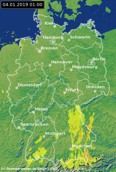 Radarbild von Freitag, 04.01.2019 um 01.00 Uhr