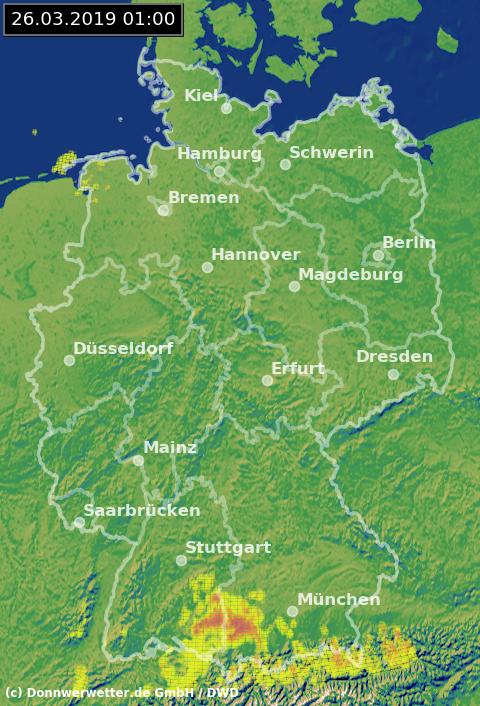 Radarbild von Dienstag, 26.03.2019 um 01.00 Uhr