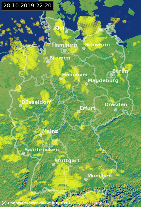 Radarbild von Montag, 28.10.2019 um 22.20 Uhr