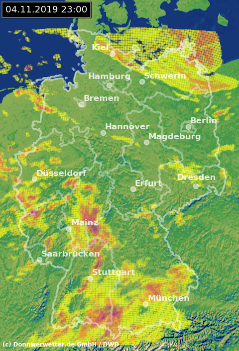 Radarbild von Montag, 04.11.2019 um 23.00 Uhr