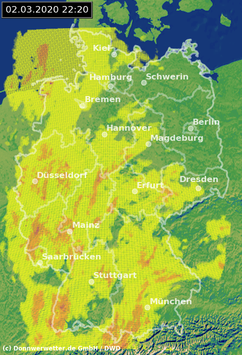 Radarbild von Montag, 02.03.2020 um 22.20 Uhr