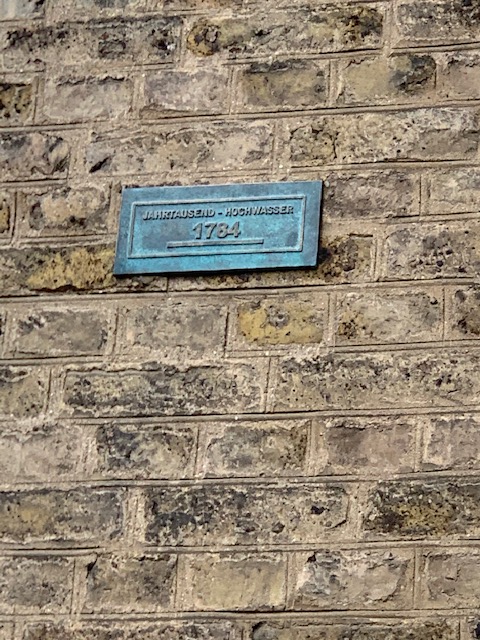 Pegelmarke von 1784 - das Hochwasser an der Kirche im Beueler Zentrum stand etwa drei Meter über Straßenebene