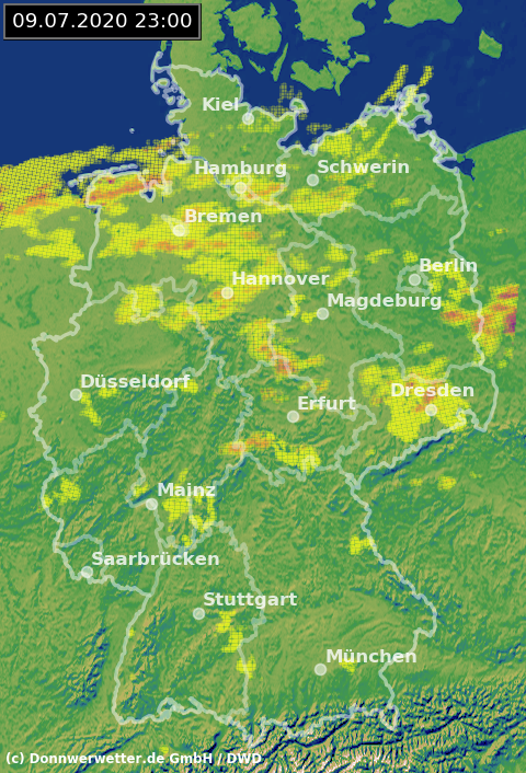 Radarbild von Donnerstag, 09.07.2020 um 23.00 Uhr
