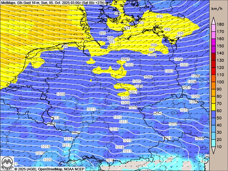 An Nord- und Ostsee treten in der Nacht zum Sonntag weiterhin Sturmböen auf, tagsüber ist morgen vor allem im Nordosten noch starker Wind zu erwarten. Zum Wochenbeginn beruhigt sich das Wetter spürbar: Am Montag folgt dann der Übergang hin zu freundlichem Oktoberwetter.