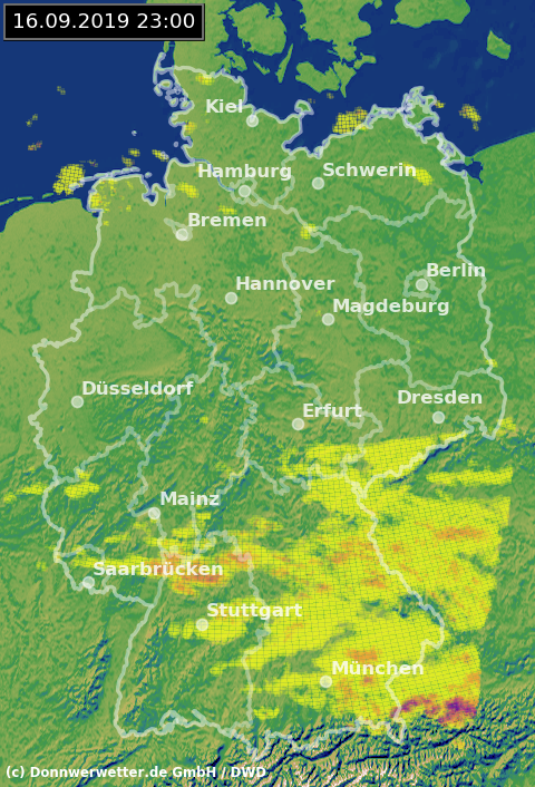 Radarbild von Montag, 16.09.2019 um 23.00 Uhr