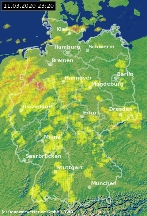 Radarbild von Mittwoch, 11.03.2020 um 23.20 Uhr