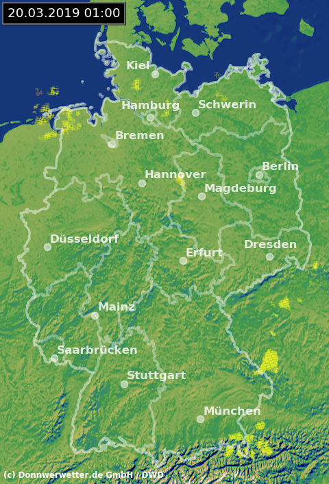 Radarbild von Mittwoch, 20.03.2019 um 01.00 Uhr