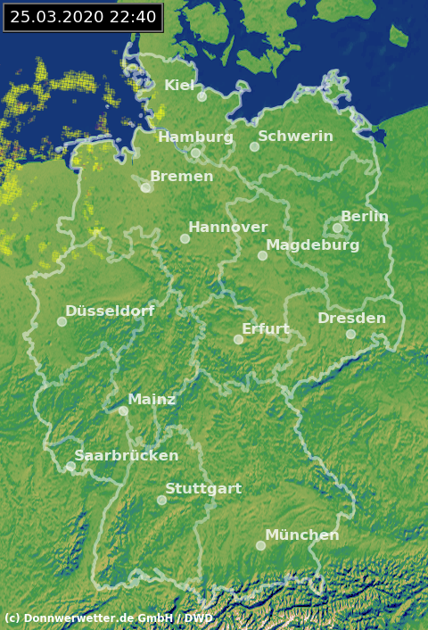 Radarbild von Mittwoch, 25.03.2020 um 22.40 Uhr