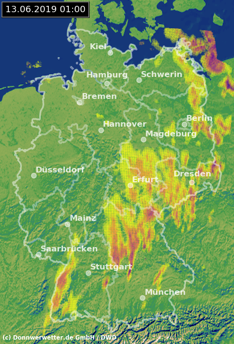 Radarbild von Donnerstag, 13.06.2019 um 01.00 Uhr