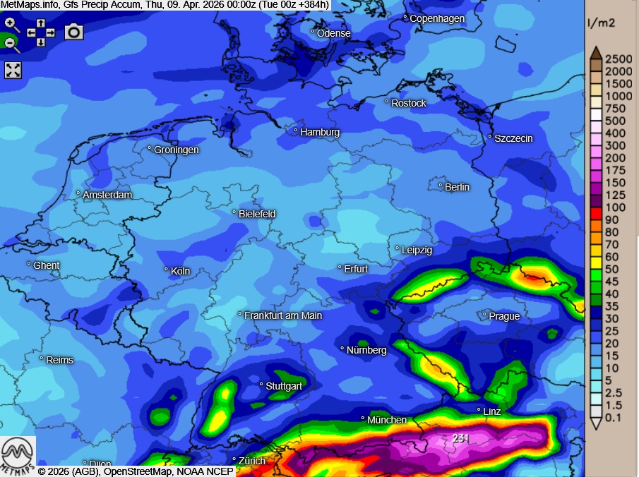 Sollte sich der Niederschlag anders verteilen oder Tiefdruckgebiete schwächer ausfallen, könnten die realen Mengen vor allem in den tieferen Lagen deutlich geringer ausfallen als berechnet.