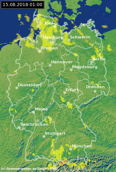 Radarbild von Mittwoch, 15.08.2018 um 01.00 Uhr