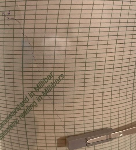 Über 20 hPa ist der Luftdruck mit Sturmtief "Detlef" binnen 24 Stunden abgestürzt - auf dem ersten Foto ist der Absturz der Luftdruckkurve unseres Mikrobarografen am Standort Bonn in den letzten 24 Stunden zu erkennen.