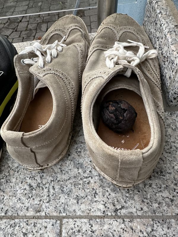 Doch auch die Tierwelt bereitet sich nun schon emsig die kalte Jahreszeit vor. Statt Schal und Winterjacke hatte das eilige Eichhörnchen mit Nikolausambitionen heute morgen aber wohl eher die ausgelatschten Herrenhalbschuhe vor der Haustüre im Visier. Als sicheres Nussversteck eignen sich die alten Treter zwar nur eingeschränkt, in Sachen Kreativität bekommt das kleine Hörnchen aber von uns die volle Punktzahl.