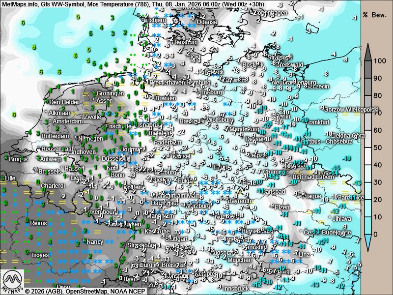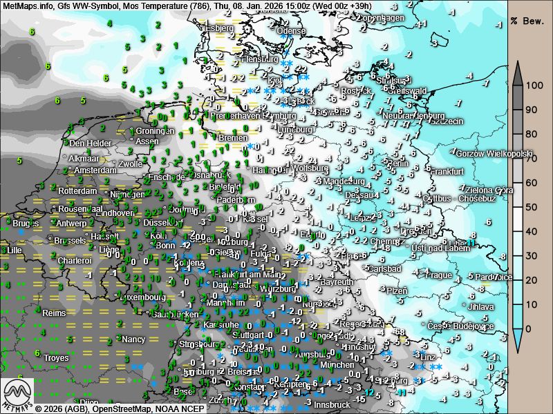 In der Nacht sowie am Donnerstag steigen die Temperaturen im Westen verbreitet in den Plusbereich, es setzt Tauwetter ein.
