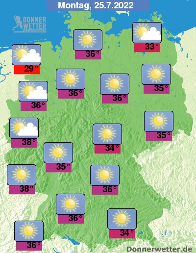 Möglich, dass in den kommenden Wochen weitere Temperaturrekorde pulverisiert werden - denn es stehen bereits die nächste Hitzewellen in den Startlöchern. Nach ein paar Tagen mit vor allem in der Nordhälfte deutlich moderateren Sommerwerten, stehen ab Sonntag bundesweit wieder alle Zeichen auf Hitze! Selbst in Küstennähe sind dann wieder Werte um 30 Grad möglich. Zu Wochenbeginn pendeln sich die Temperaturen dann auf Werte um 30 bis 36 Grad ein.
